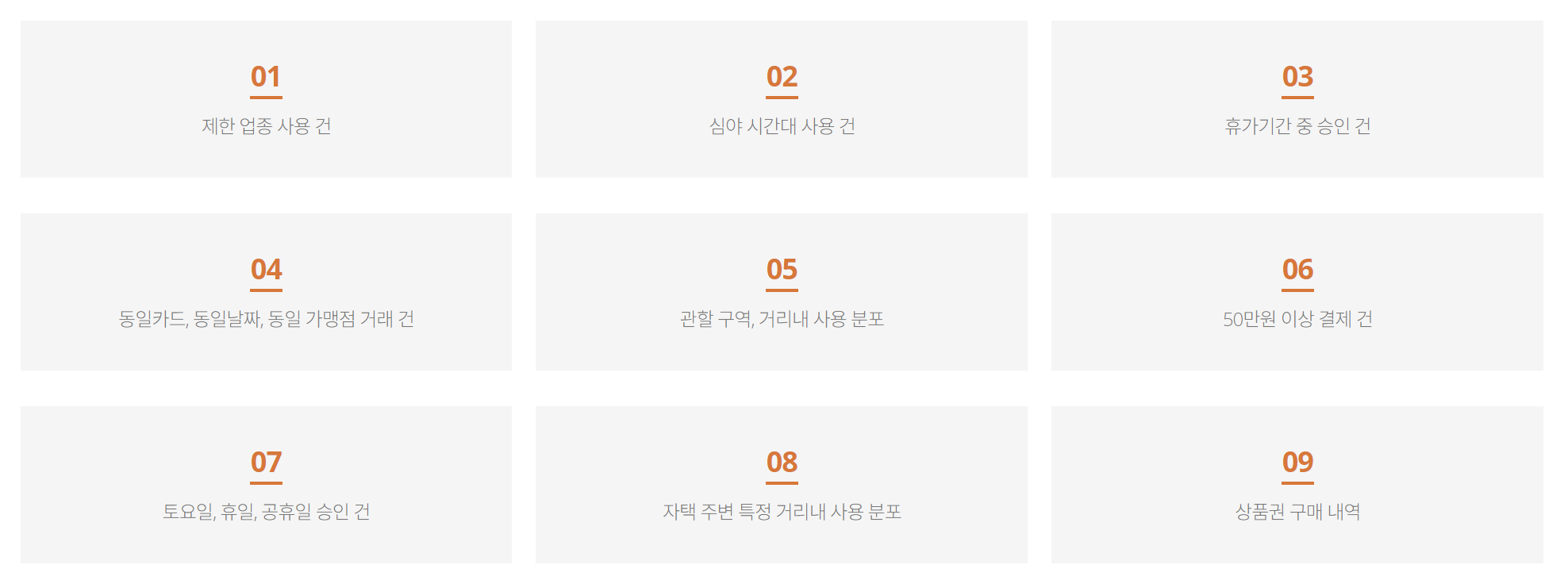 법인카드 사용을 효율적으로 관리하는 모니터링 솔루션으로, 저비용·단기간 구축과 상시 모니터링 시스템으로의 확장이 가능