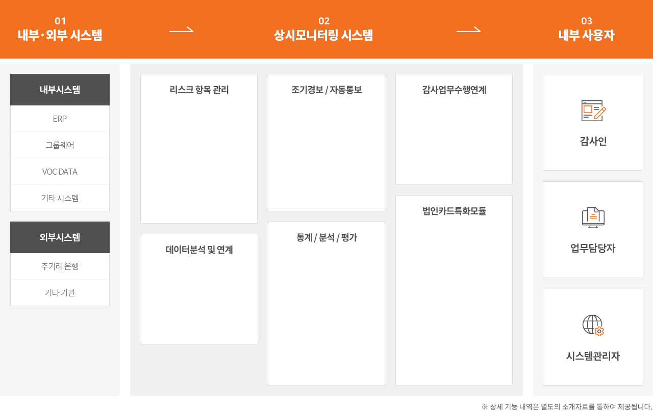 데이터 기반으로 이상 징후를 모니터링하고, 시나리오 관리 기능을 통해 리스크를 분석·평가·예측할 수 있는 솔루션